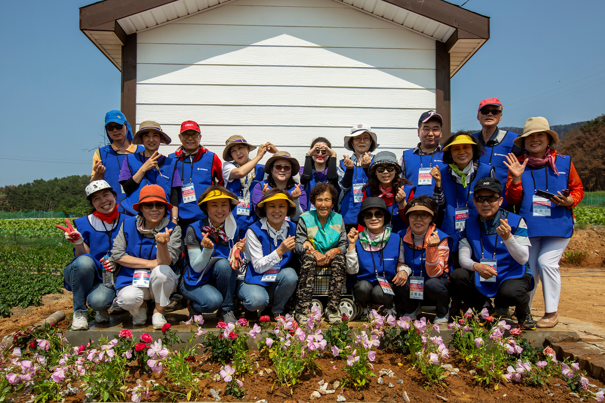 직접 심은 화단에 앞에서 우리 봉사자들도 활짝 웃으며 한컷!!