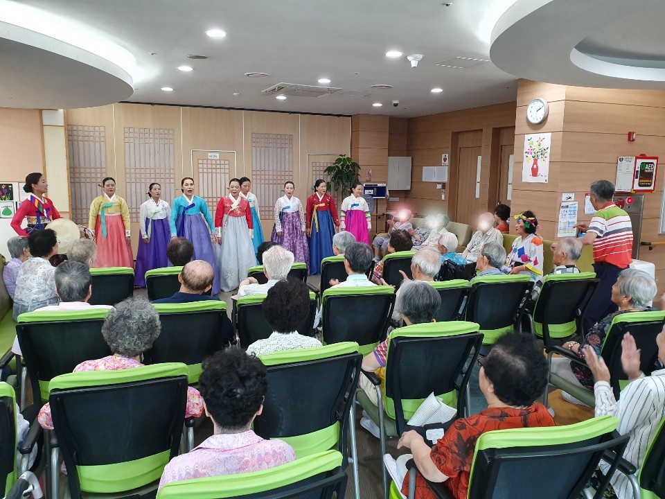 오늘 참살이 민요봉사단이 건강보험공단 서울요양원을 찾아 더위를 한방에 날리는 시원시원하고 속이 뻥 뚫리는