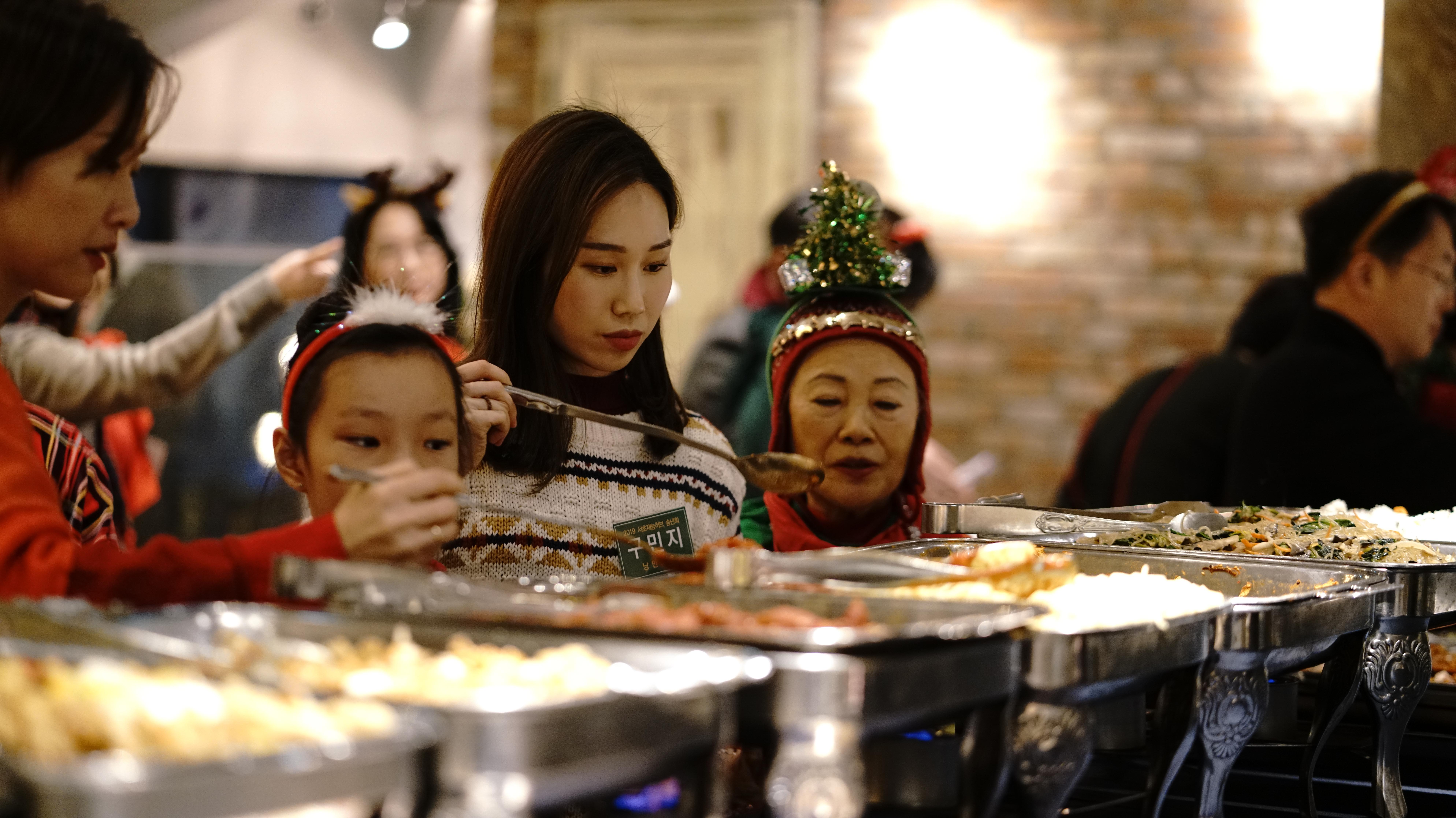 열광의 퍼레이드가 끝나고 조금 늦은 만찬이 시작되었습니다. 근사하게 차려진 뷔페로 식사를 하며 서로 못다한 담소를 나누는 모습이 정답고 활기찼습니다. 그 분위기를 이어서 게임을 진행하며 각자 신문지로 정체를 알 수 없도록 준비한 선물들을 나누는 시간을 가졌습니다. 코뚜레를 선물로 받거나 남자 분이 스타킹을 선물로 받는 등의 웃지못할 헤프닝도 벌어진 즐거운 시간이었습니다.