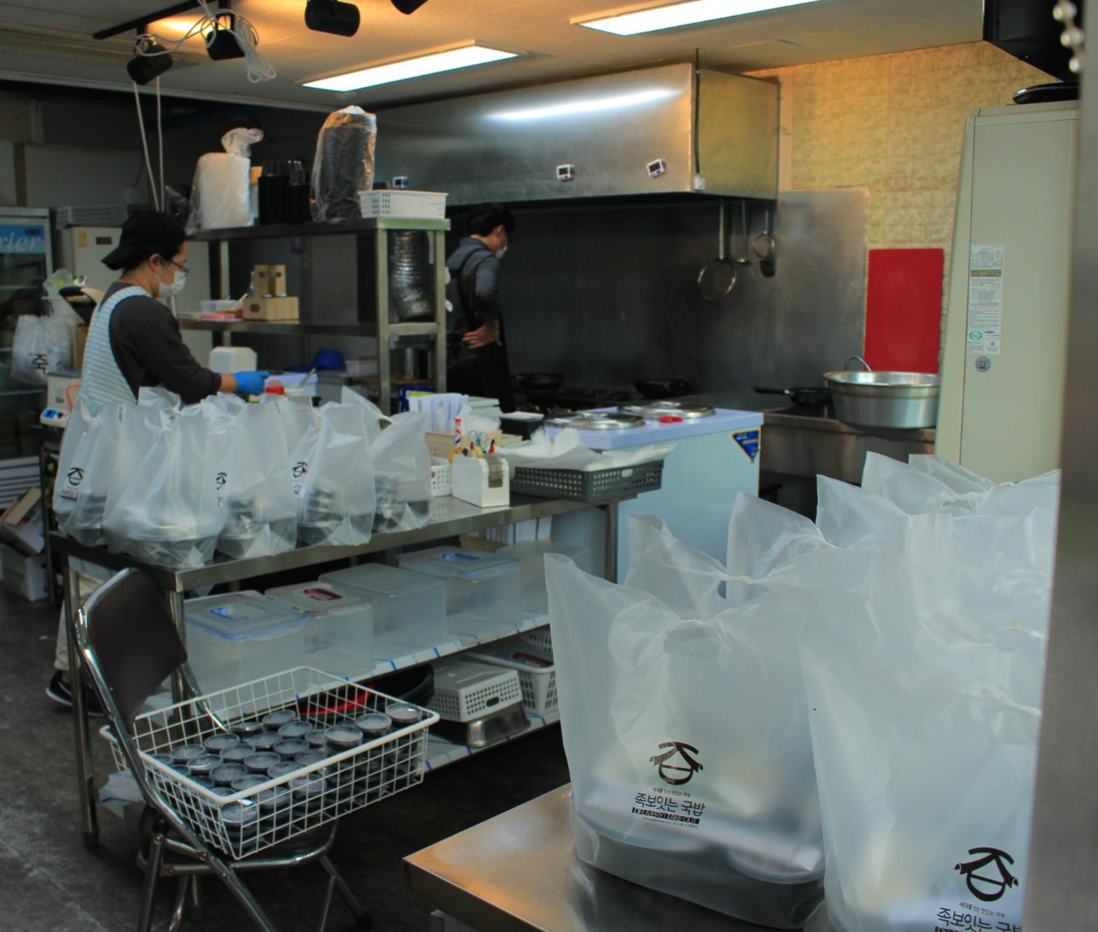 다시 '족보잇는 국밥'으로 와서 방배2동 자원봉사자분들과 함께 국밥 30그릇을 가지고 방배2동으로 다녀왔어요!