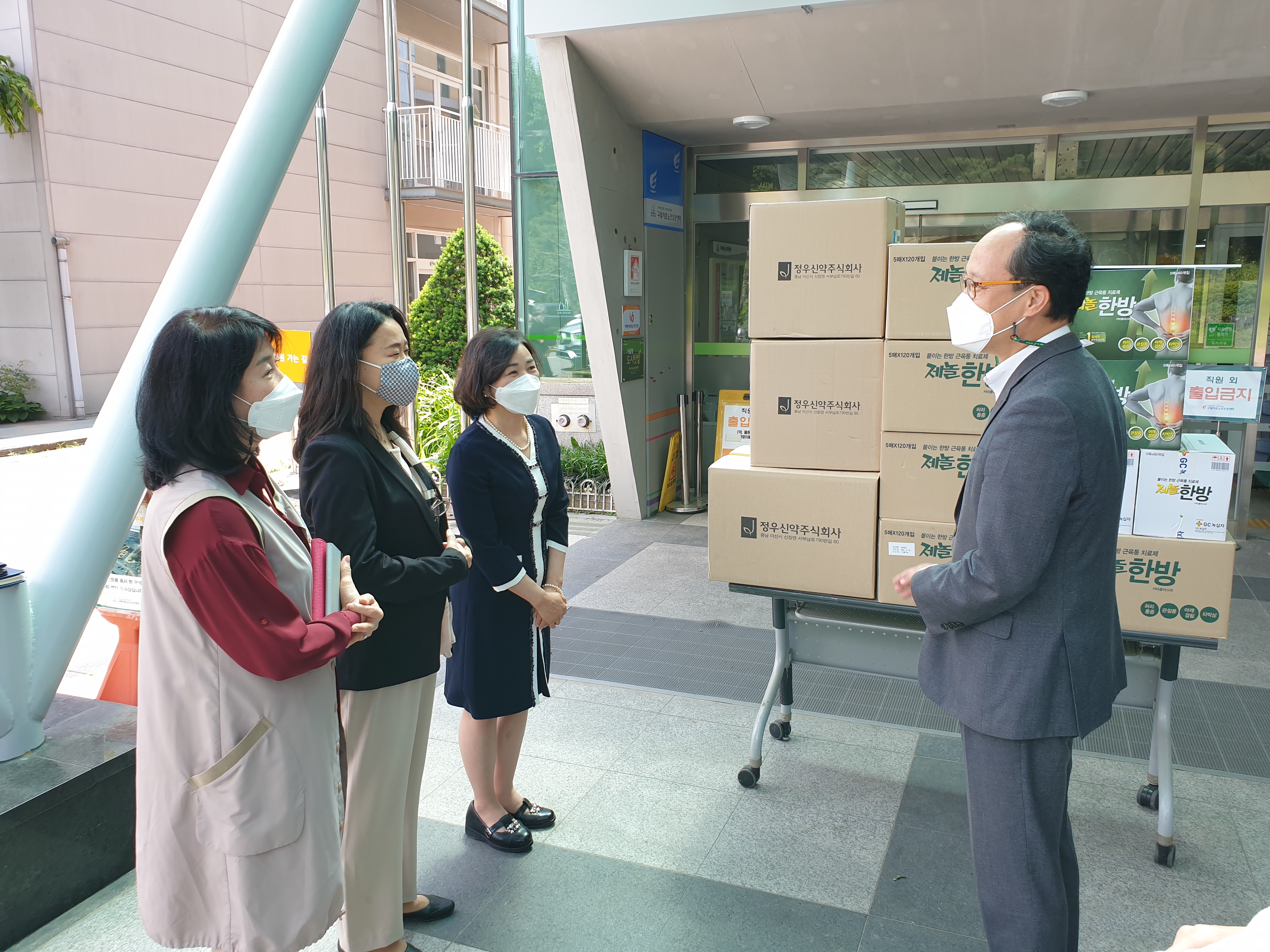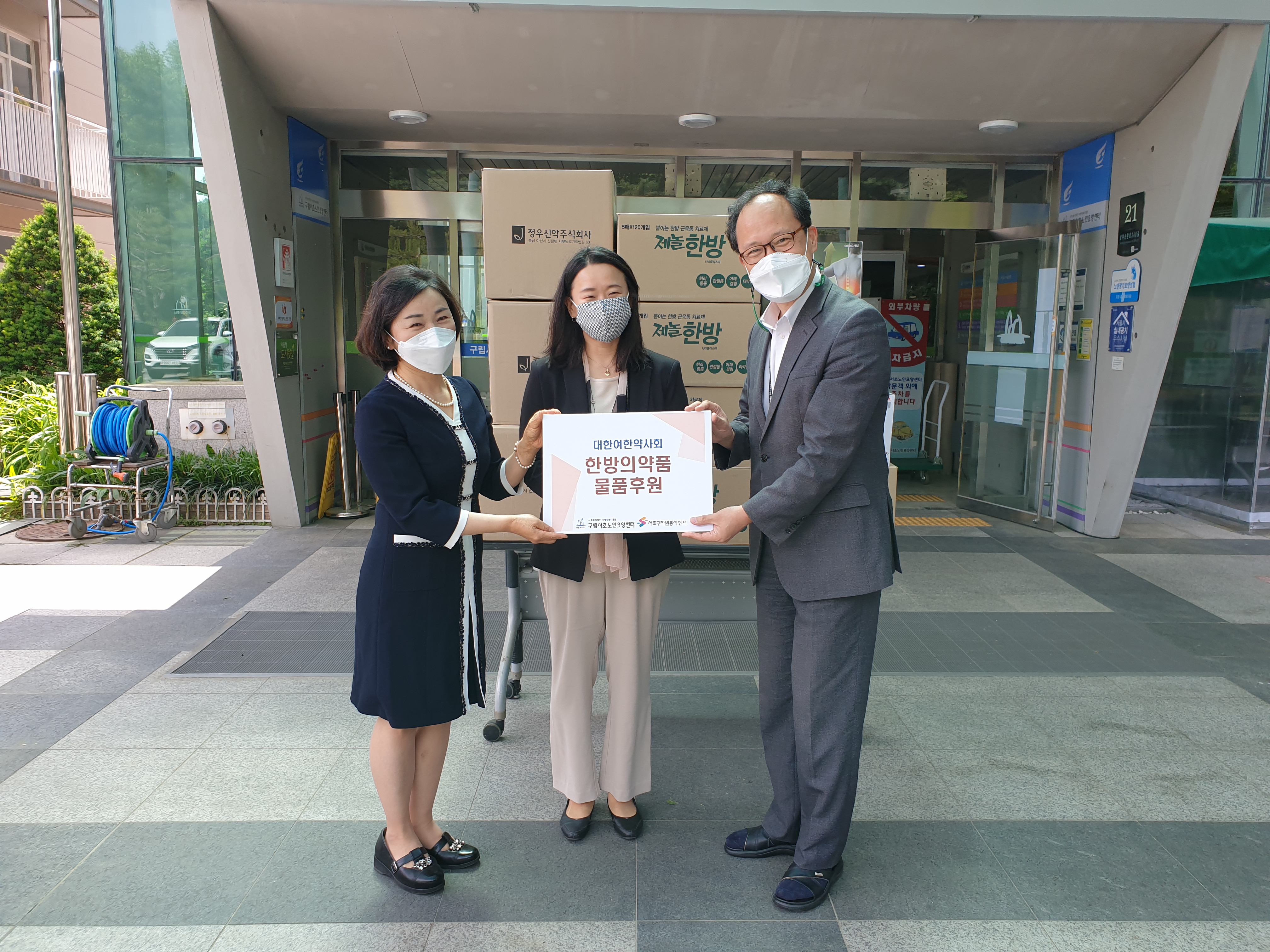 왼쪽부터 여한약사회 박정아 단장님, 서초구자원봉사센터 오영수 센터장님, 구립서초노인요양센터 나종선 원장님입니다. ^^