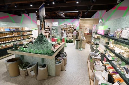 이니스프리에서는 매장을 활용하여 23만개의 공병을 분쇄해 만든 ‘공병공간’을 조성했다고 하는데요! 화장품 공병이 분쇄되는 과정을 시각적으로 담은 공간 뿐 만 아니라 업사이클링 제품을 제작하는 ‘업사이클링 아뜰리에’ 또한 만나볼 수 있다고 합니다!