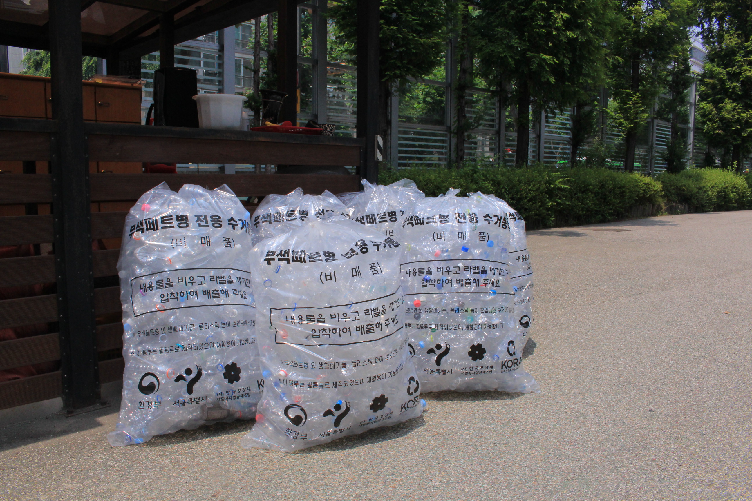학생들을 만나기 전, 그동안 양재초 학생들이 가정내에서 모아온 플라스틱을 수거하는 오늘을 위해