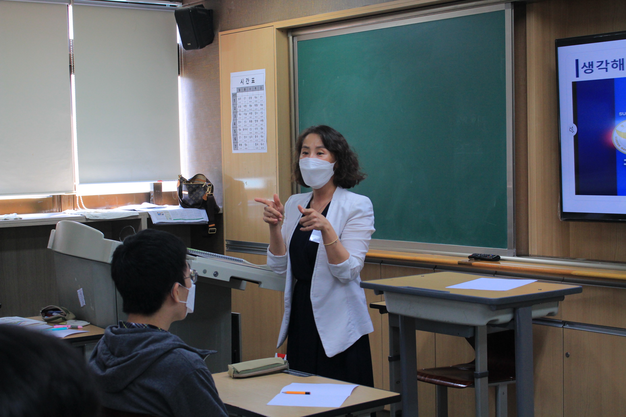직접 준비해 주신 프레젠테이션과 봉사에 대한 다양한 수업 주제들을 보니, 선생님들의 정성과 열의가 느껴졌습니다. 학생들도 이 시간만큼은 바쁘게 풀던 문제집을 내려놓고 집중하는 모습인데요.