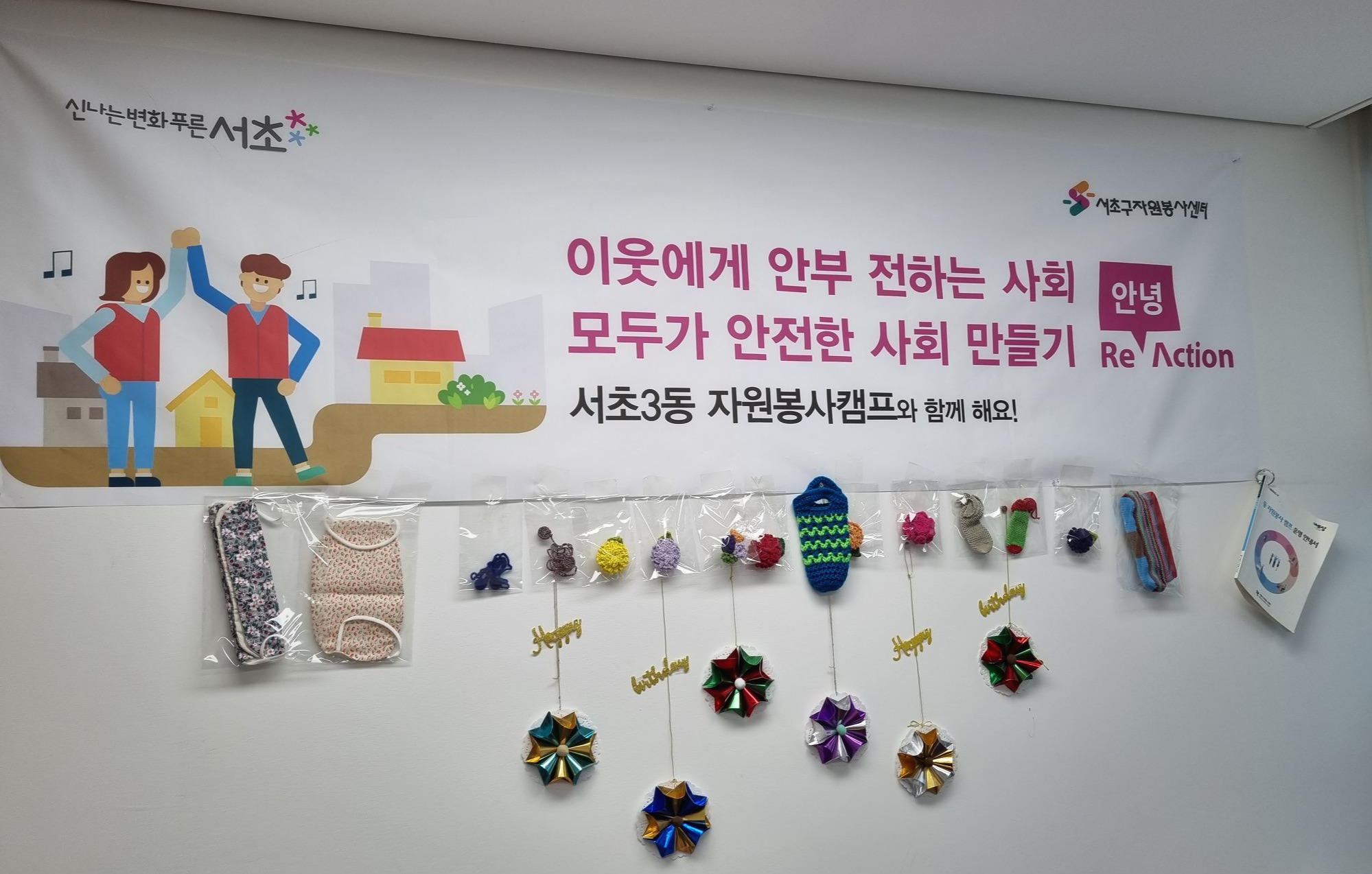 사실 서초 3동 캠프는 예전부터 수공예품을 만들어 기부해온 금손 활동가분들이 모여있는 캠프랍니다! 사진에 나와있는