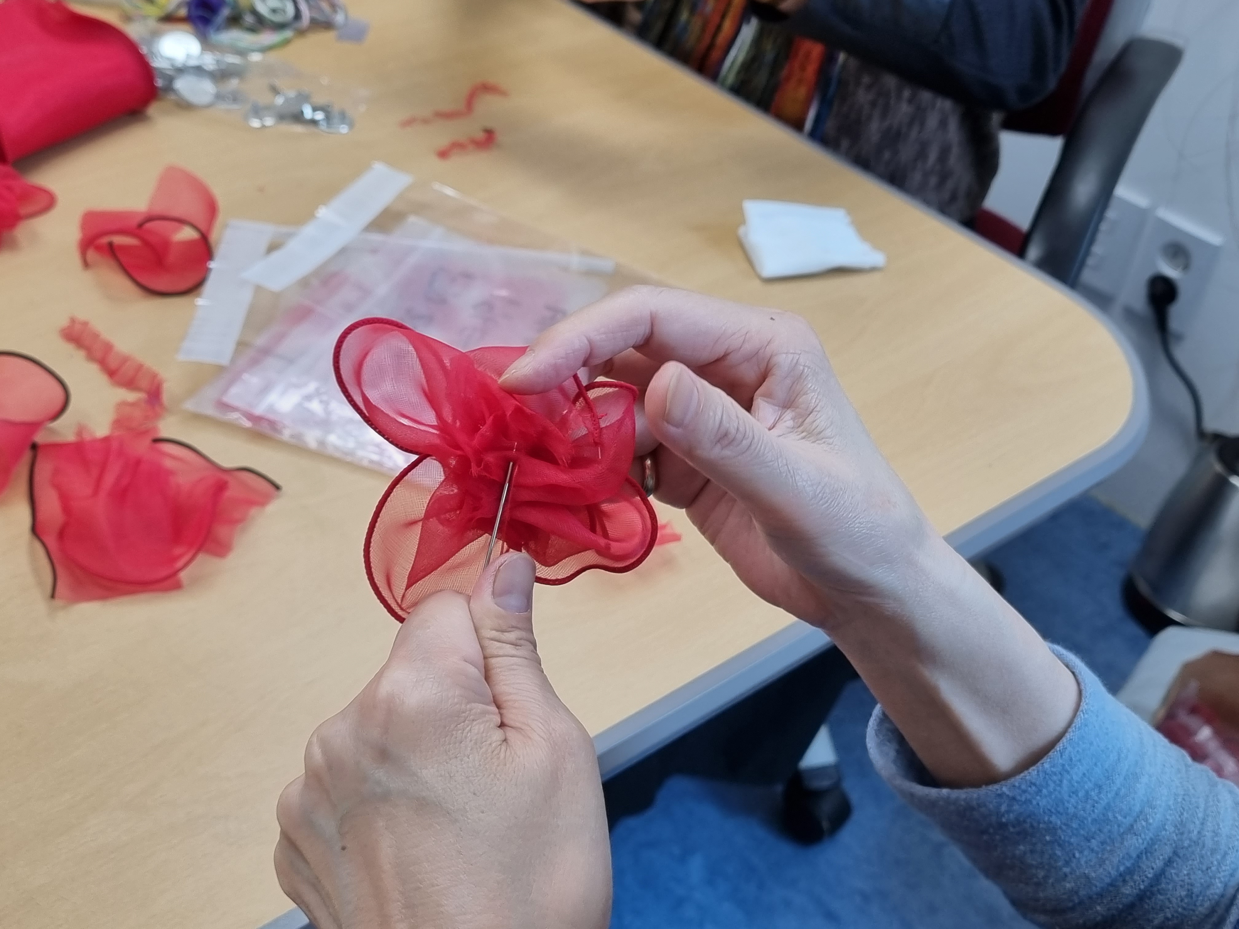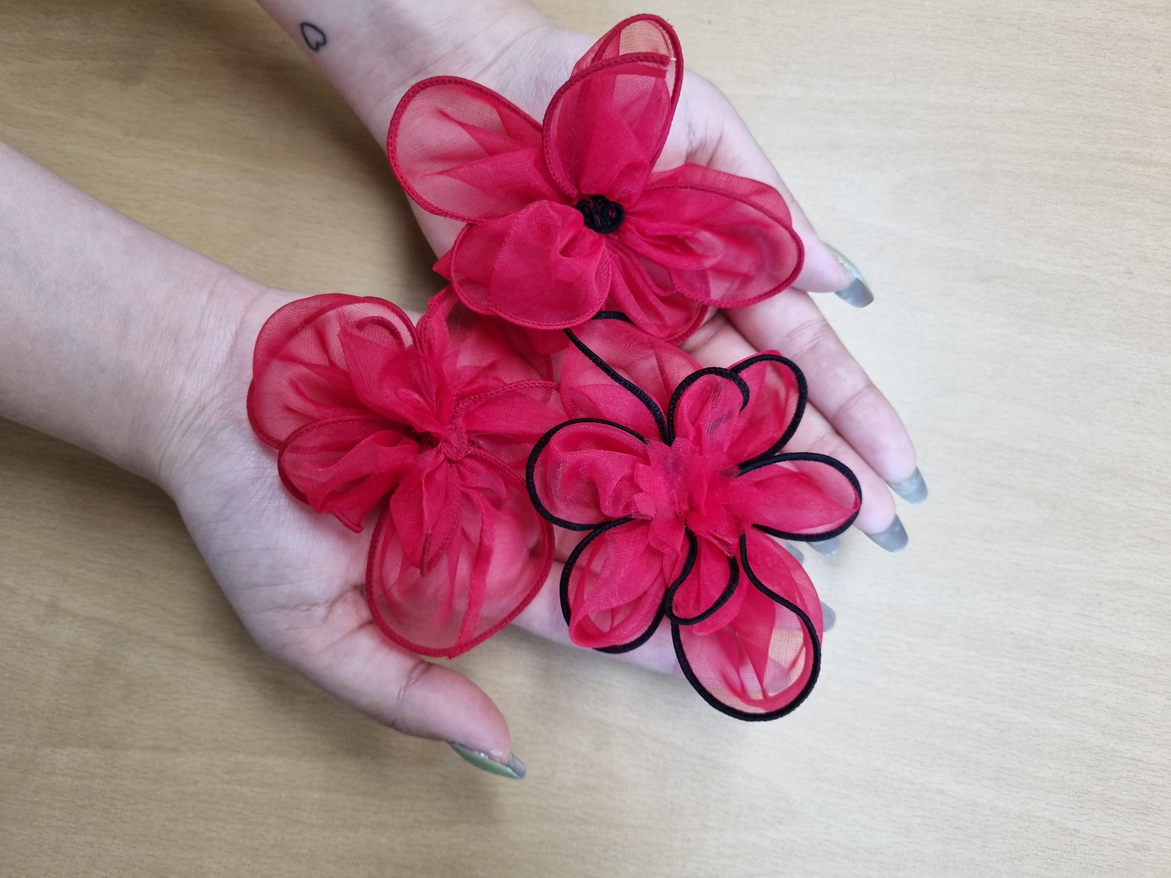 먼저, 붉은 천을 꽃 사이즈에 맞춰서 잘라줍니다.