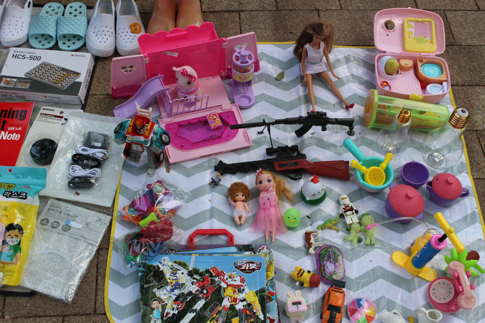 “오늘 벼룩시장에 처음 참여했는데 모자, 인형, 헬멧, 팔튜브 이렇게 많이 팔았어요!