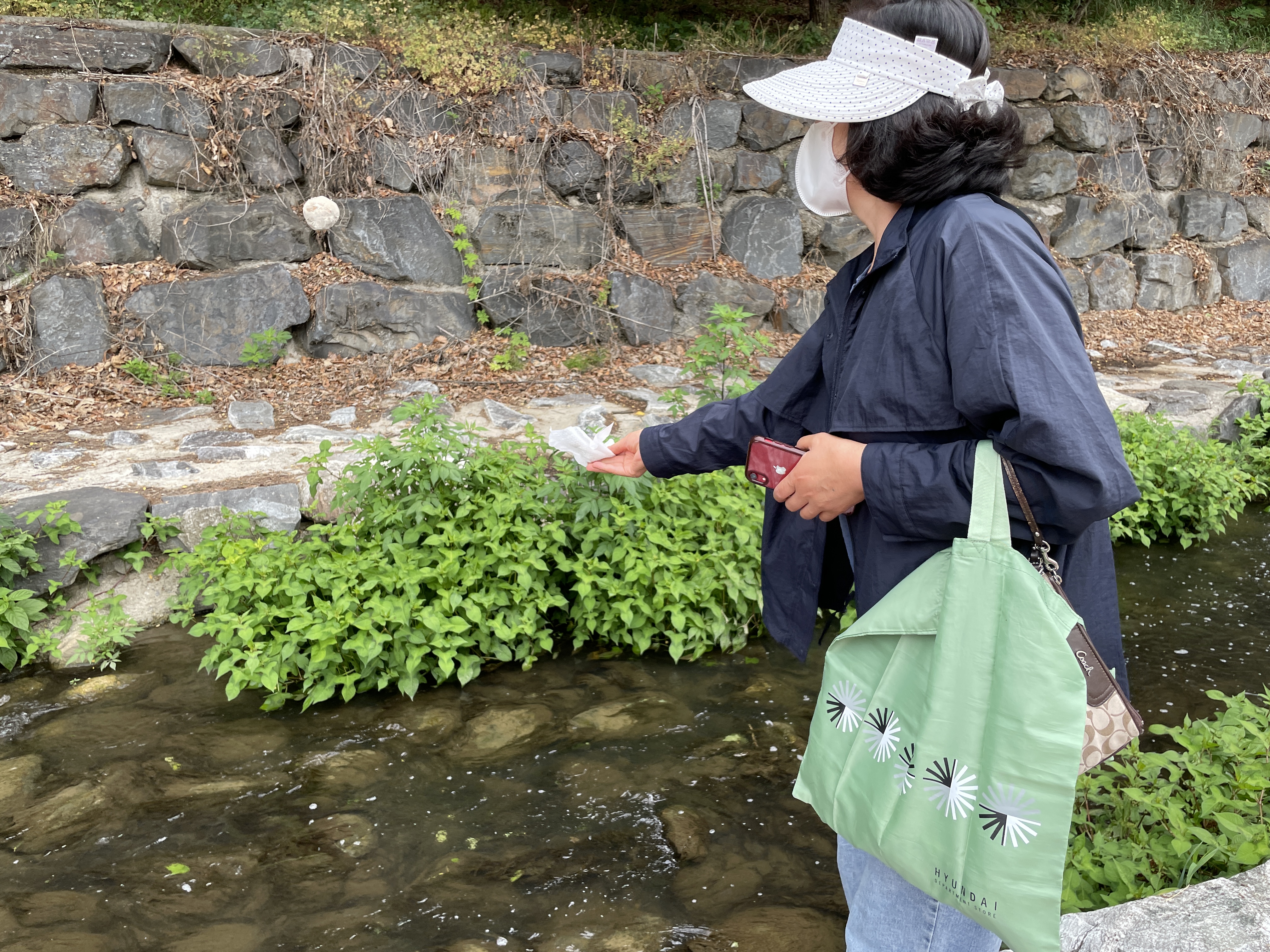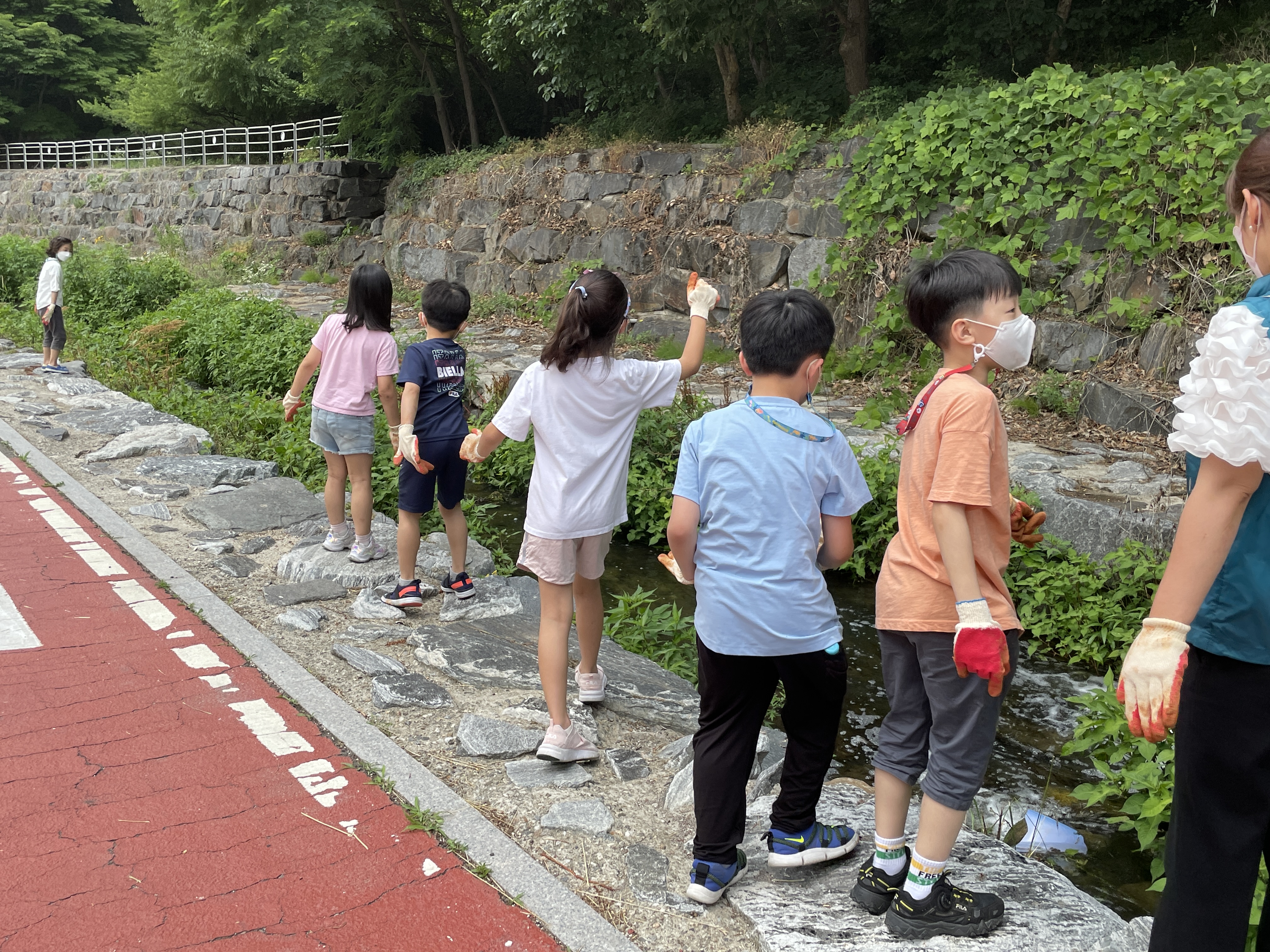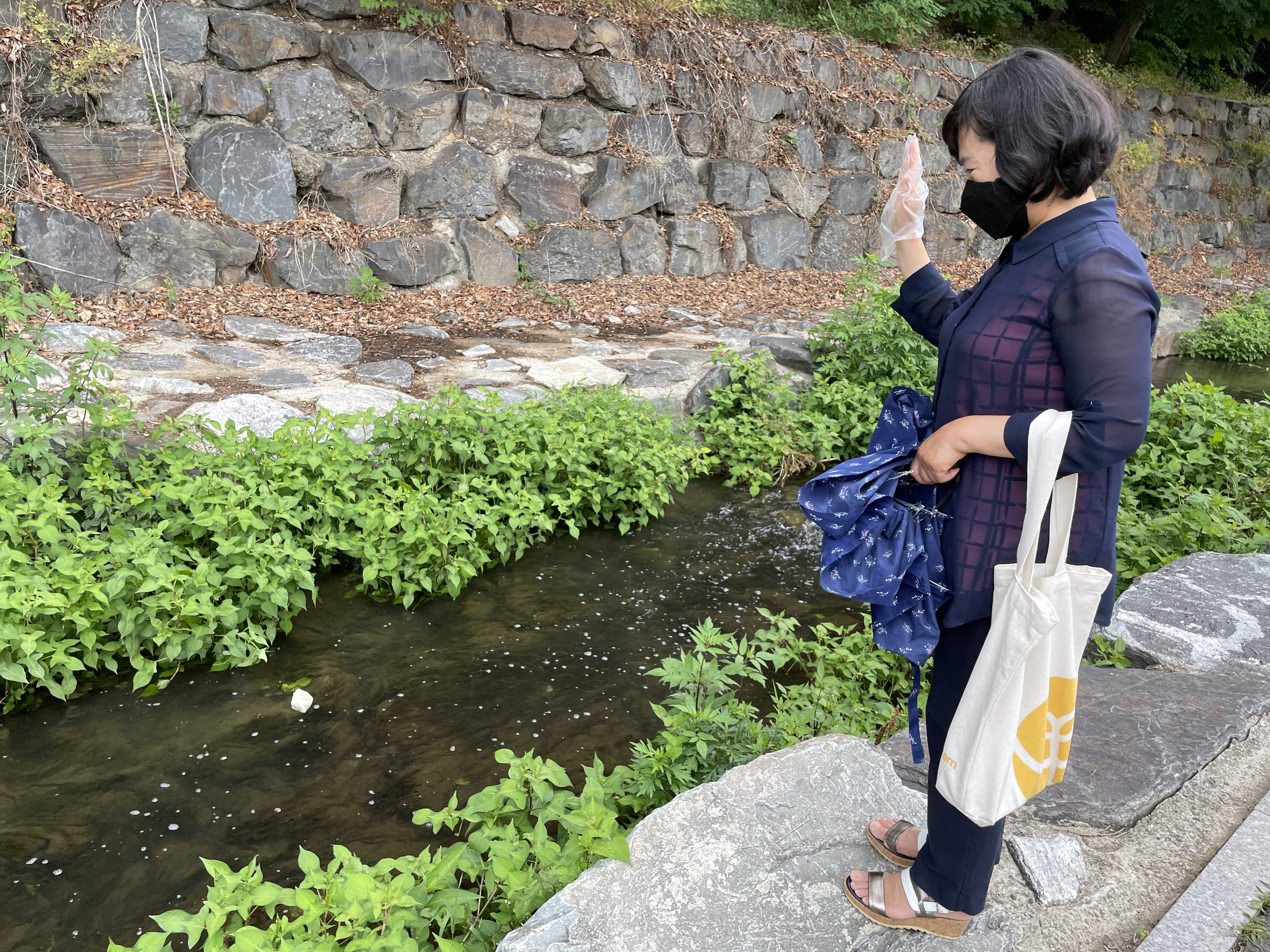 잠시 쉬는 시간을 가진 후, 학생들과 같이 여의천을 따라 걸어가면서 흙공을 던졌습니다. 흙공은 만들자 마자 사용할 수 없고 일정기간 발효과정을 거쳐야 하기에, 한 달 전 미리 만들어서 곰팡이가 예쁘게 핀 흙공을 던졌습니다. 예정에는 없었지만 지나가시던 주민분들도 흙공 던지기 활동도 같이 참여해주셨습니다!