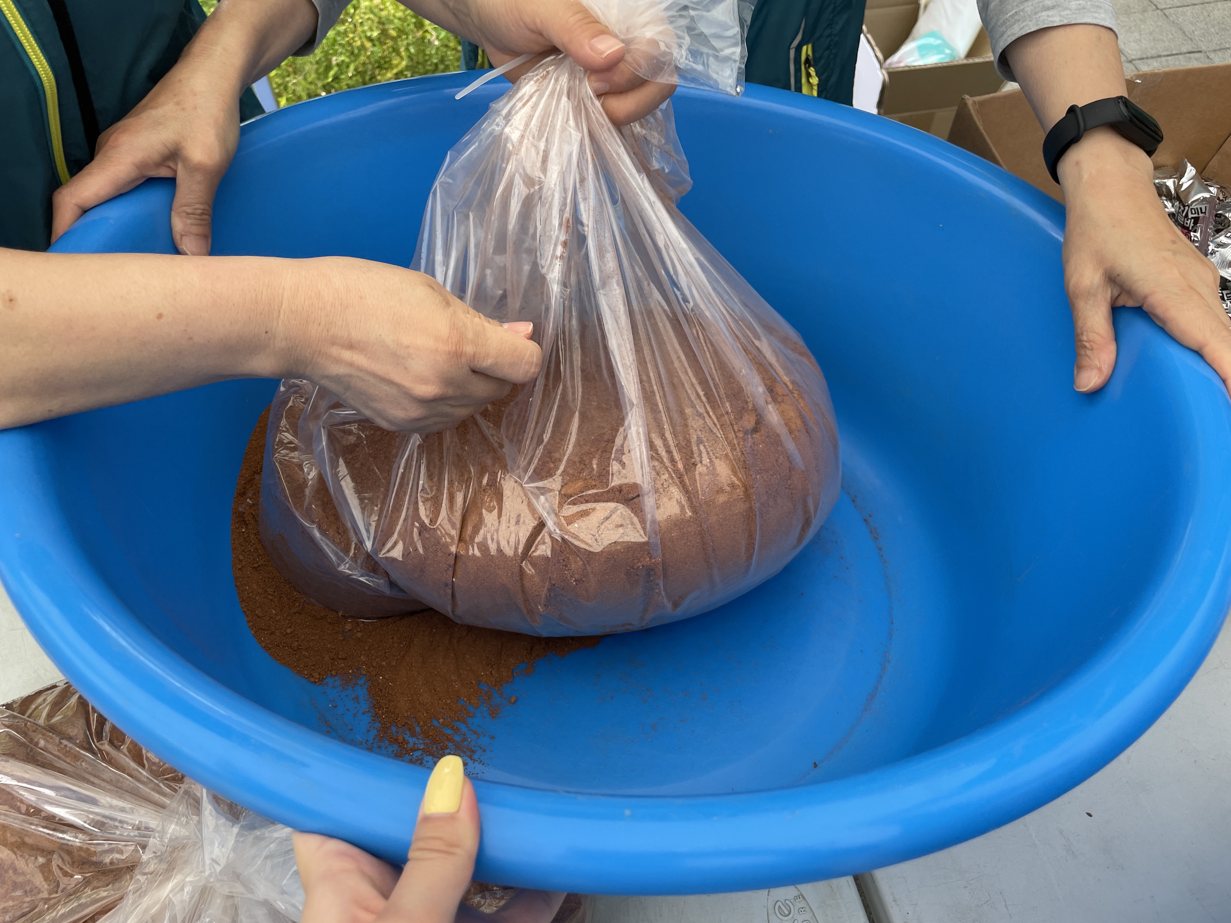 EM 흙공 베이스를 만든 후에 소분하여 학생들이 흙공을 만들었습니다. 저도 같이 참여해서 만들어보았는데요, 생각보다 힘이 많이 드는 활동이었습니다. 하지만 학생들이 만드는 활동을 재밌게 참여해주어서 만드는 내내 활기차고 즐겁게 진행할 수 있었습니다!