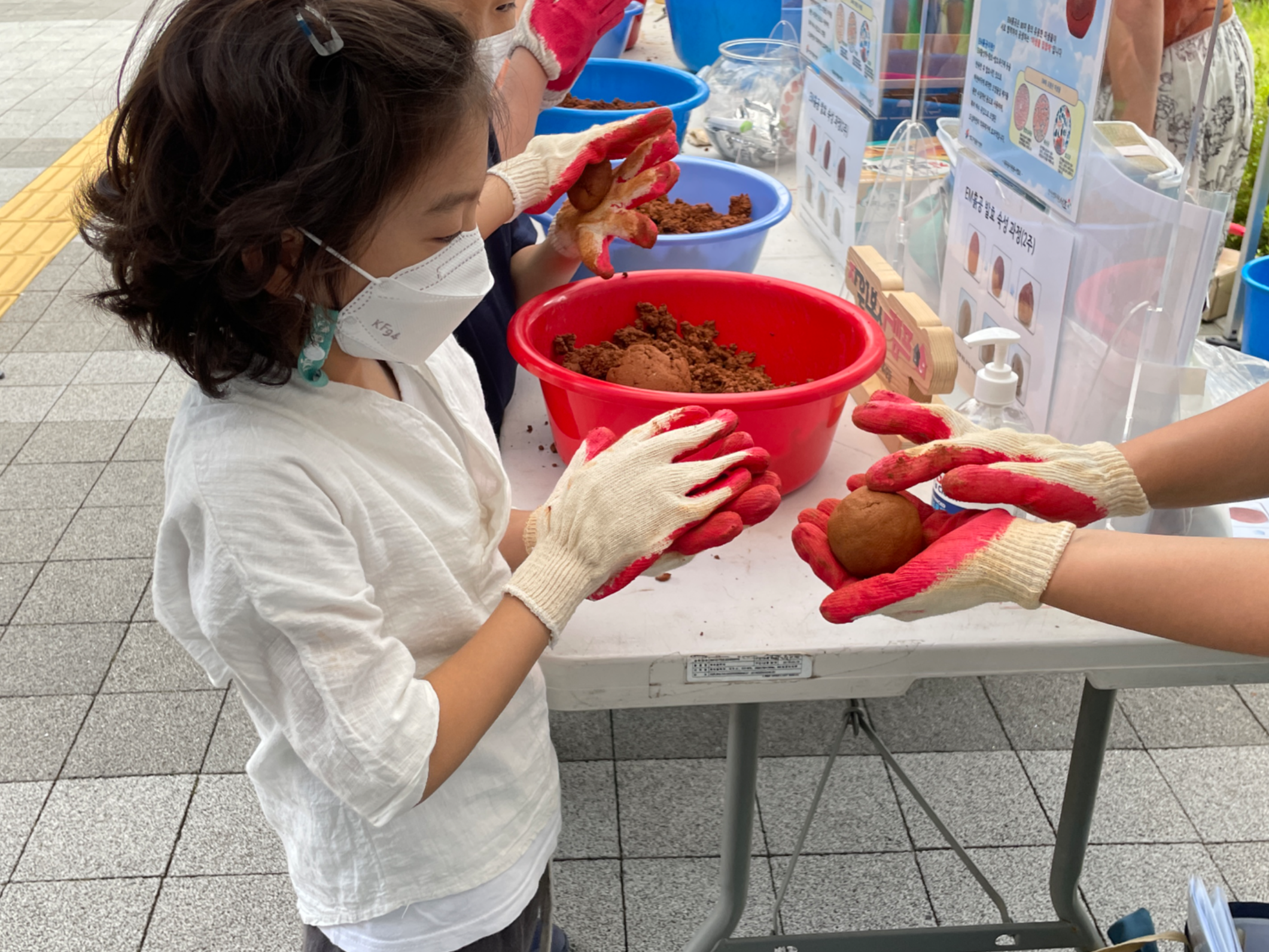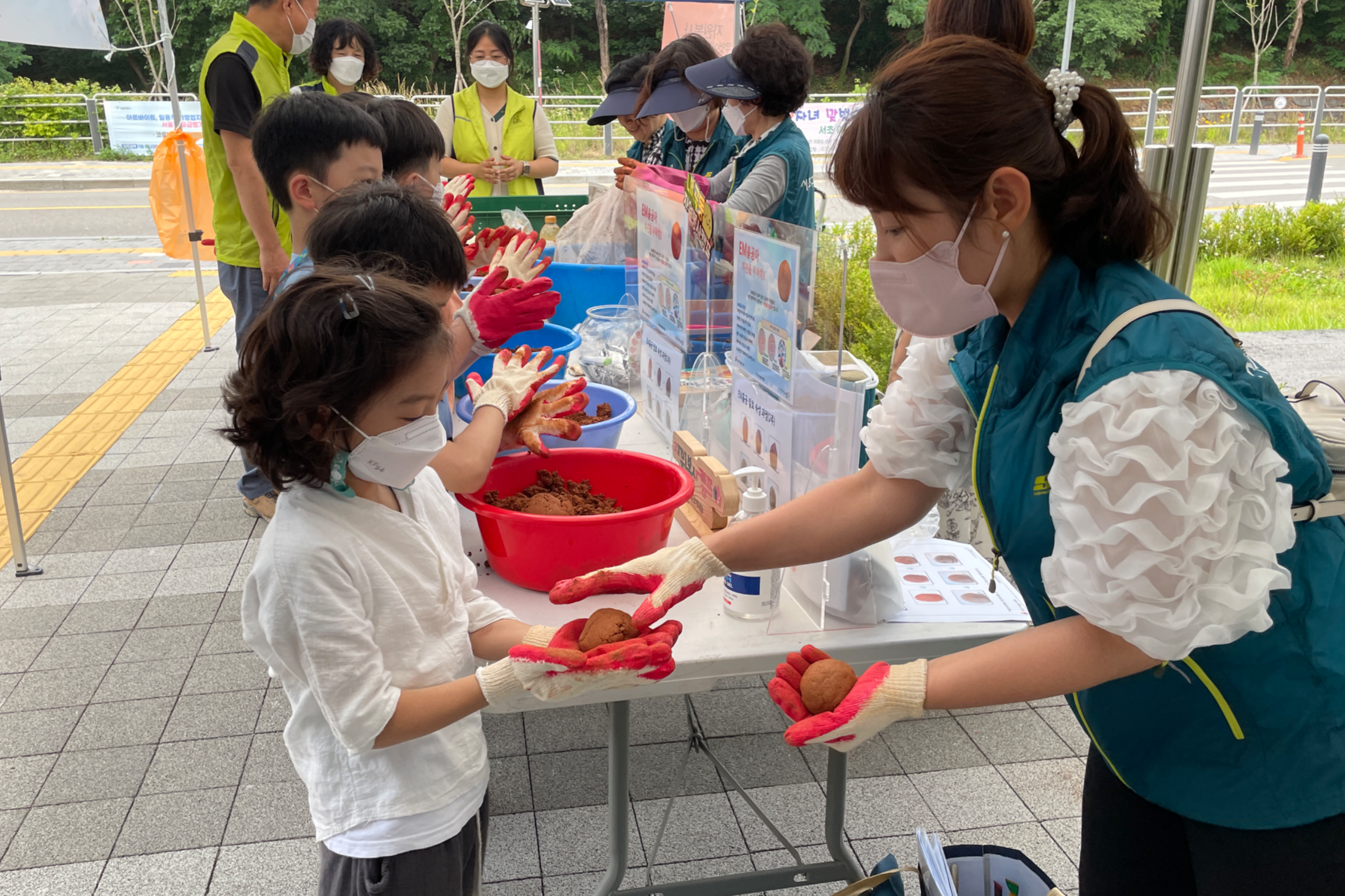 이번활동은 좀 더 특별하였는데요, 내곡초등키움센터와 연계하여 초등학교 학생들과 같이 EM흙공을 만들고 만들어진 흙공을 던지는 활동까지 진행하였습니다.