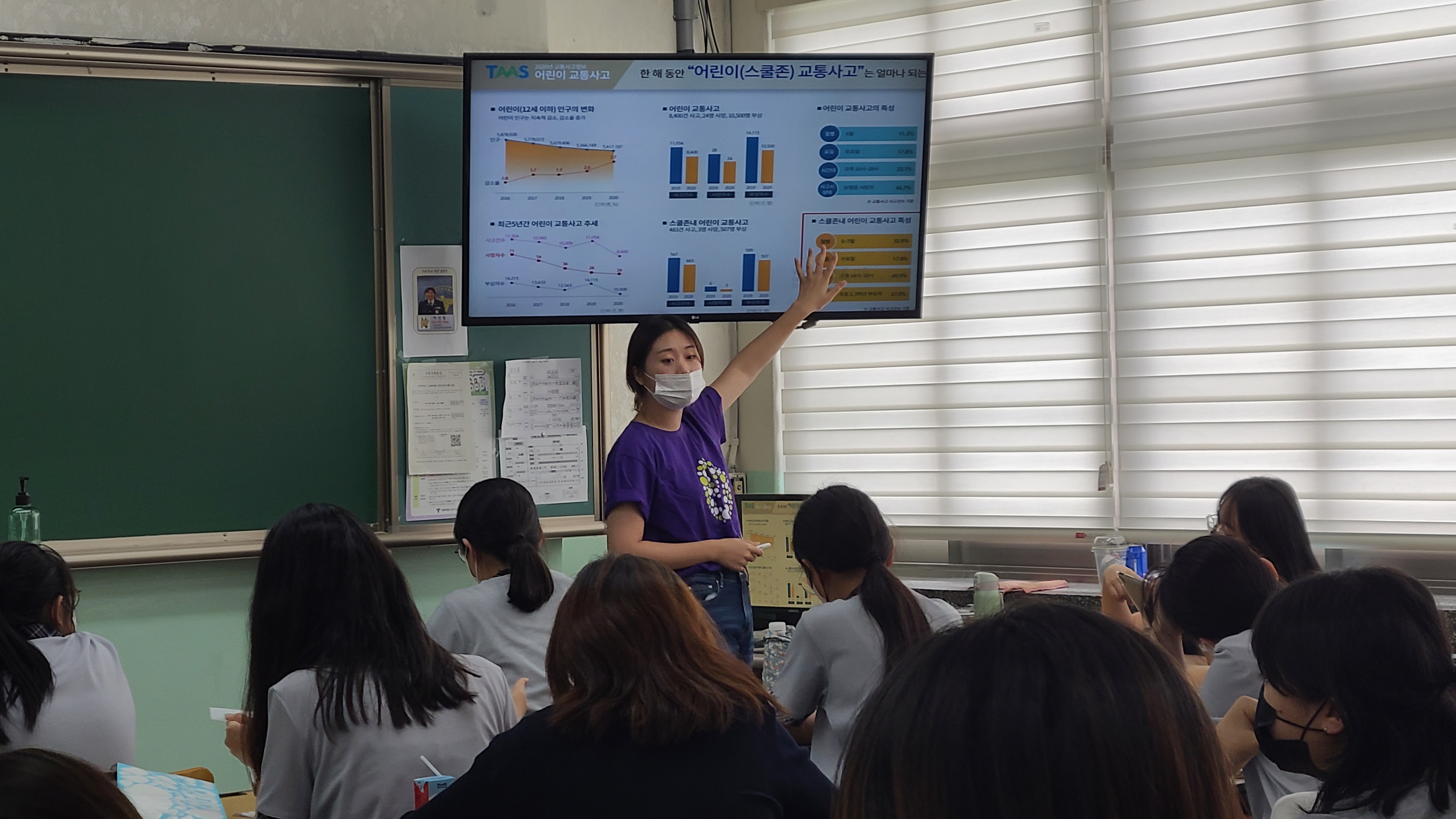 '초성게임', '몸으로 말해요'와 같은 간단한 레크 형식으로 어린이 교통사고 통계와, 안전우산의 효과에 대해 재미있게 알아가며, 오늘 우리의 봉사가 사회 이슈 해결에 어떻게 기여하는지 알 수 있었습니다.