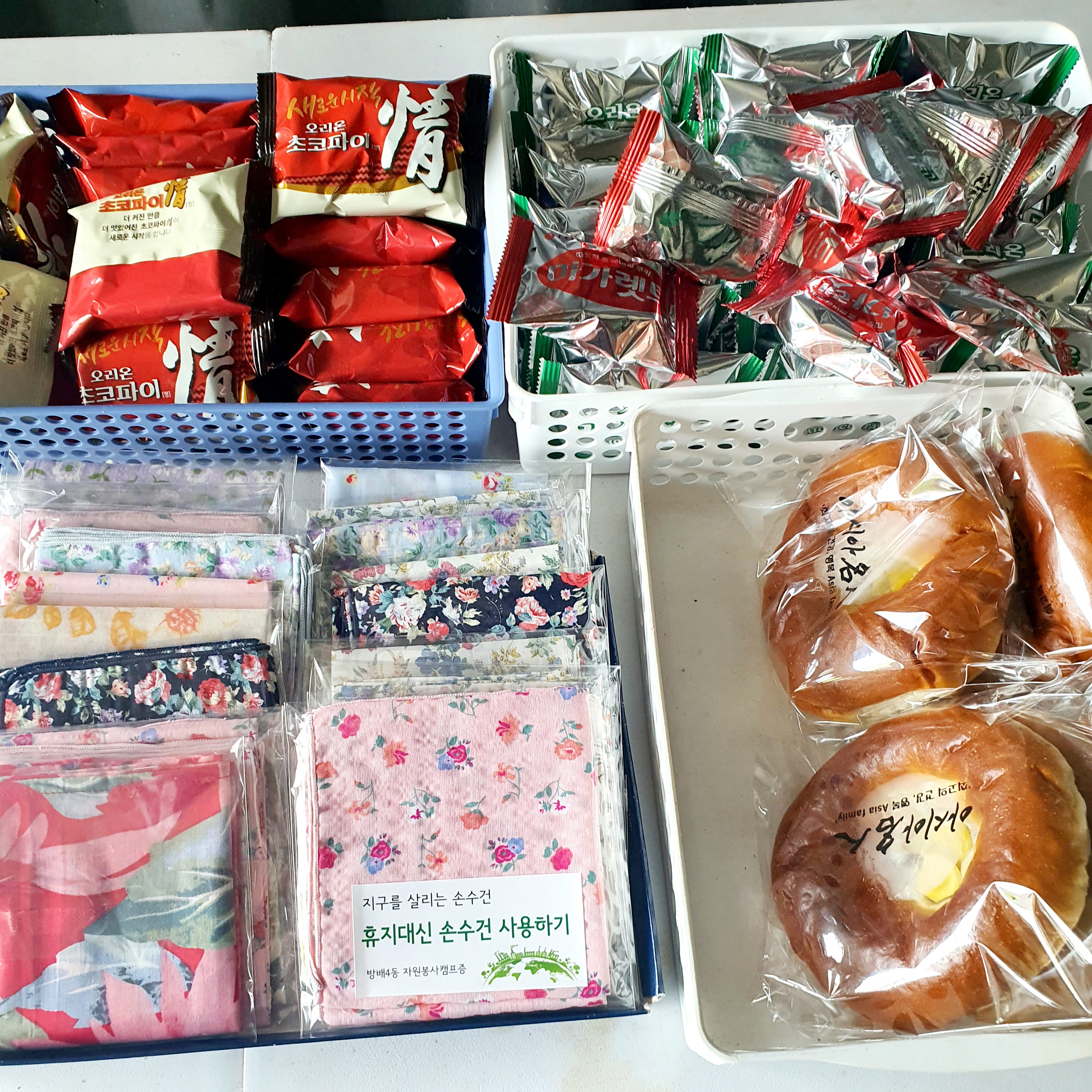 방배4동, 반포4동 자원봉사캠프에서 손바느질로 만든 손수건도 가져오셔서
