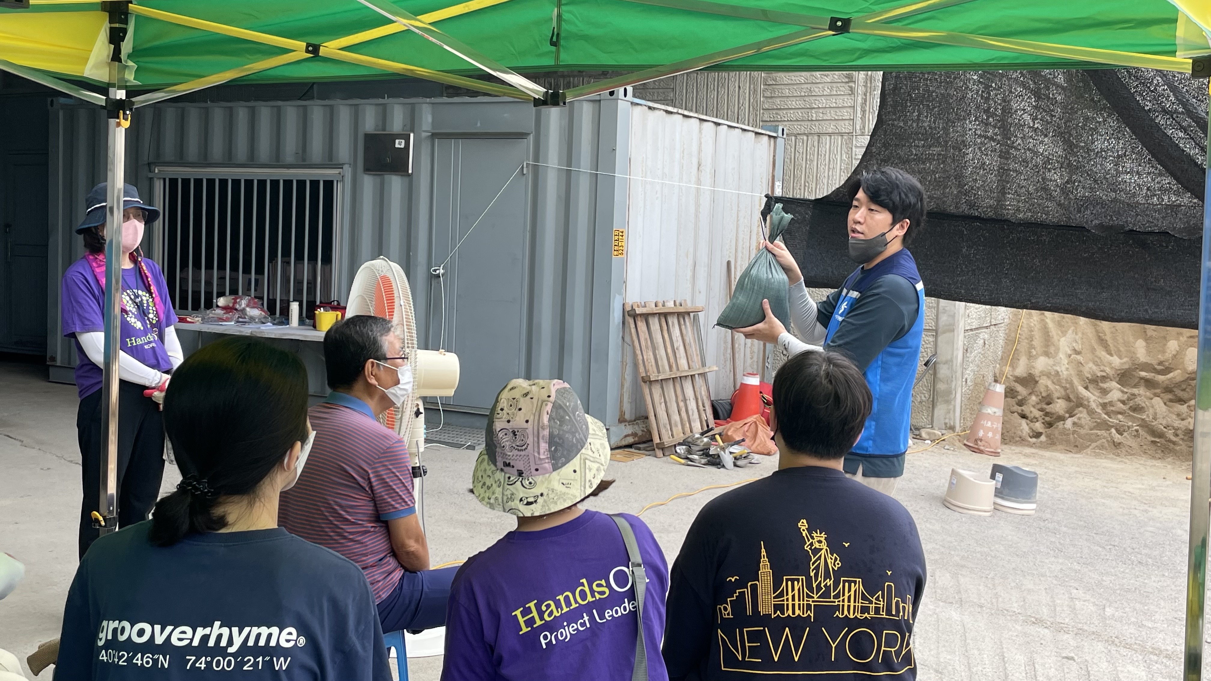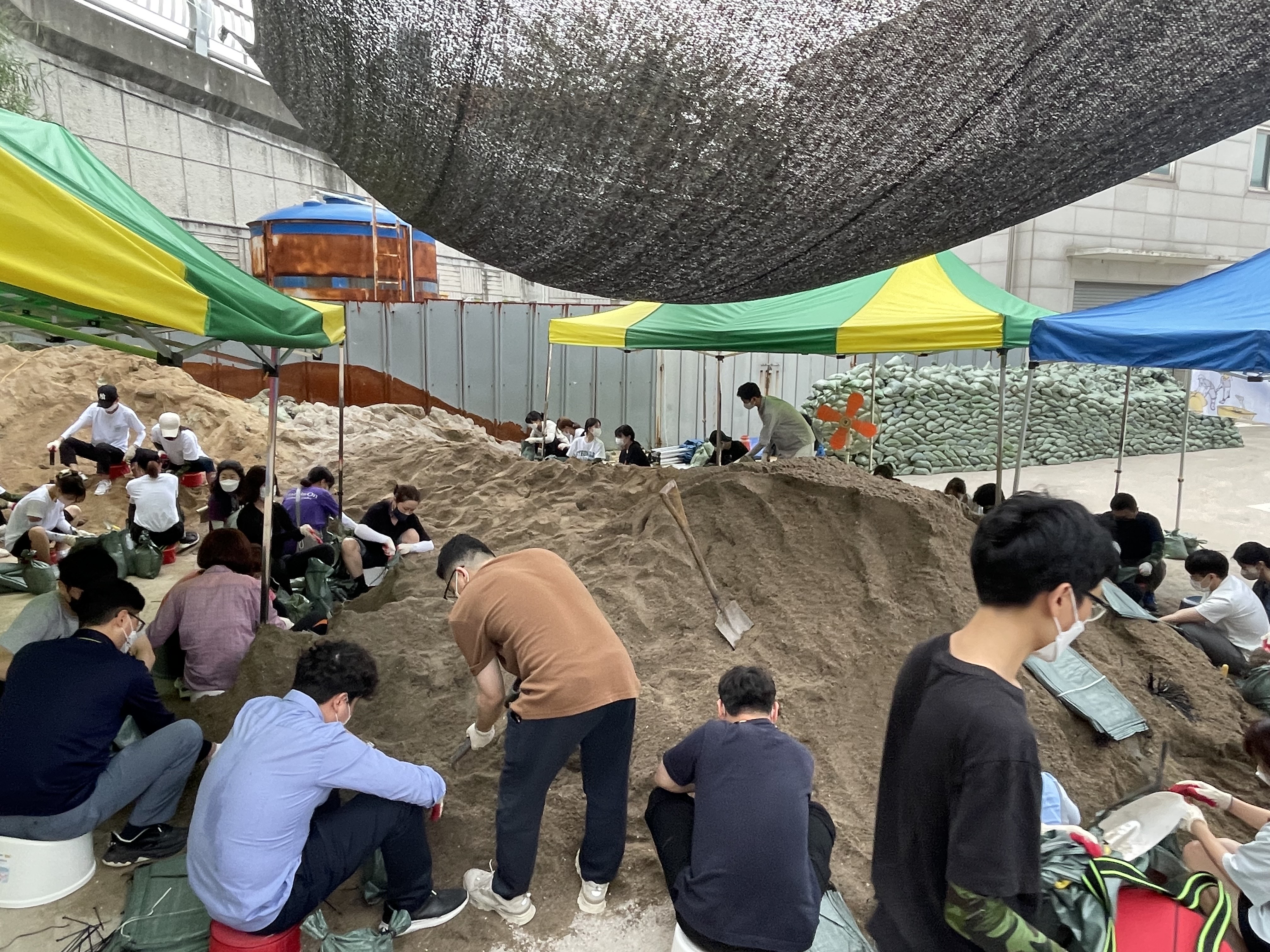 지난 8월 11일(목)부터 반포빗물펌프장, 반포체육센터 옆에서 이루어졌던 모래주머니 만들기 마지막 날입니다.
