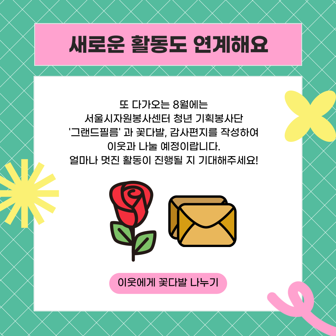 또 다가오는 8월에는 서울시자원봉사센터 청년 기획봉사단