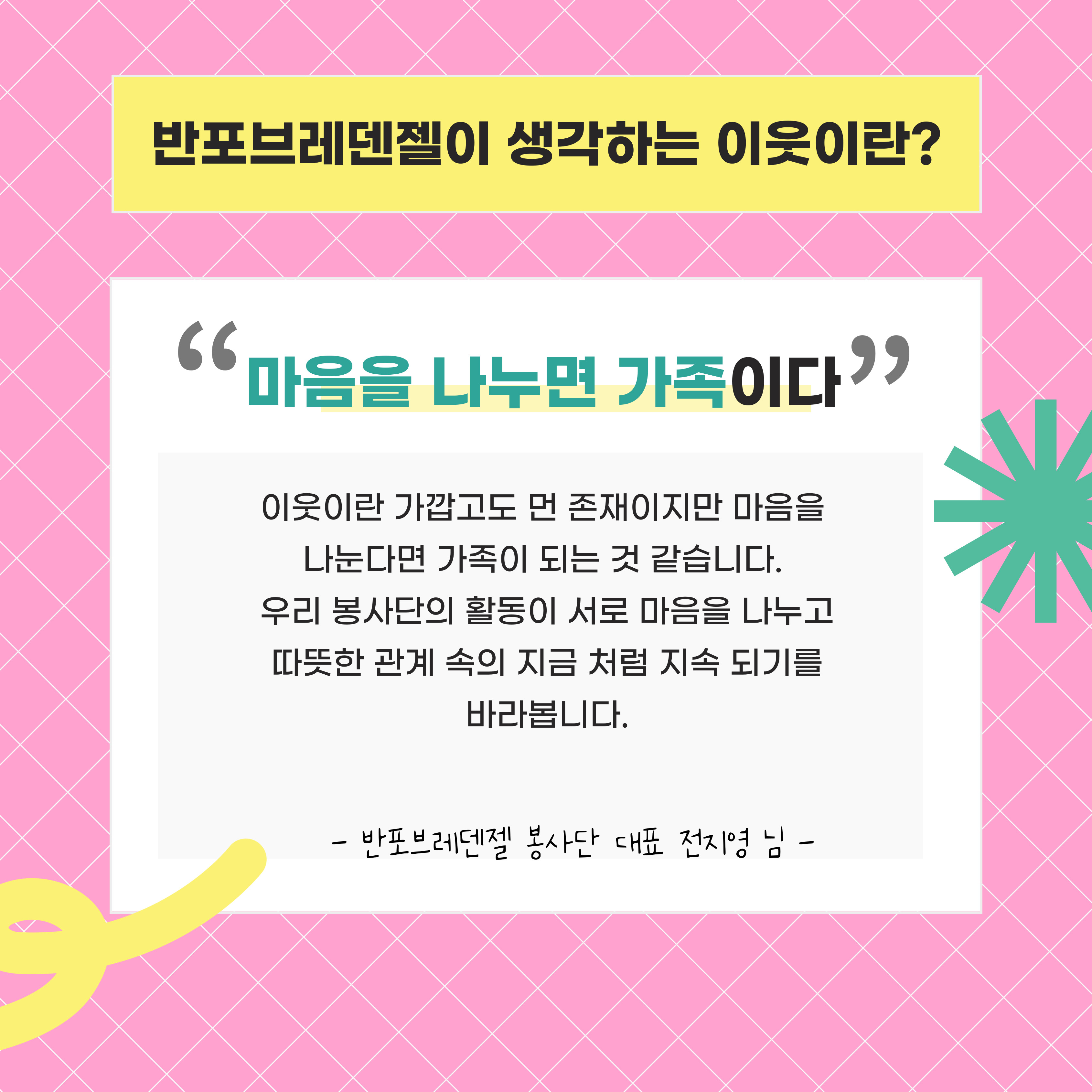 이웃봉사단 중 네 번째, 반포 브레덴젤 봉사단을 소개합니다.