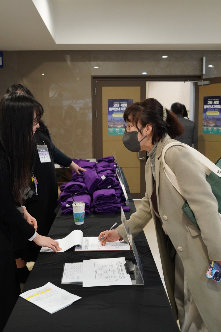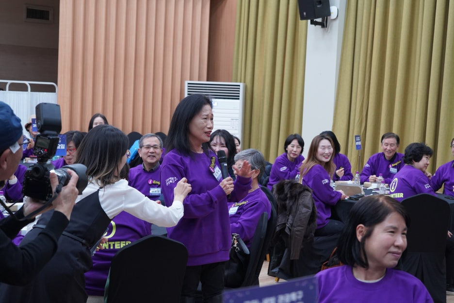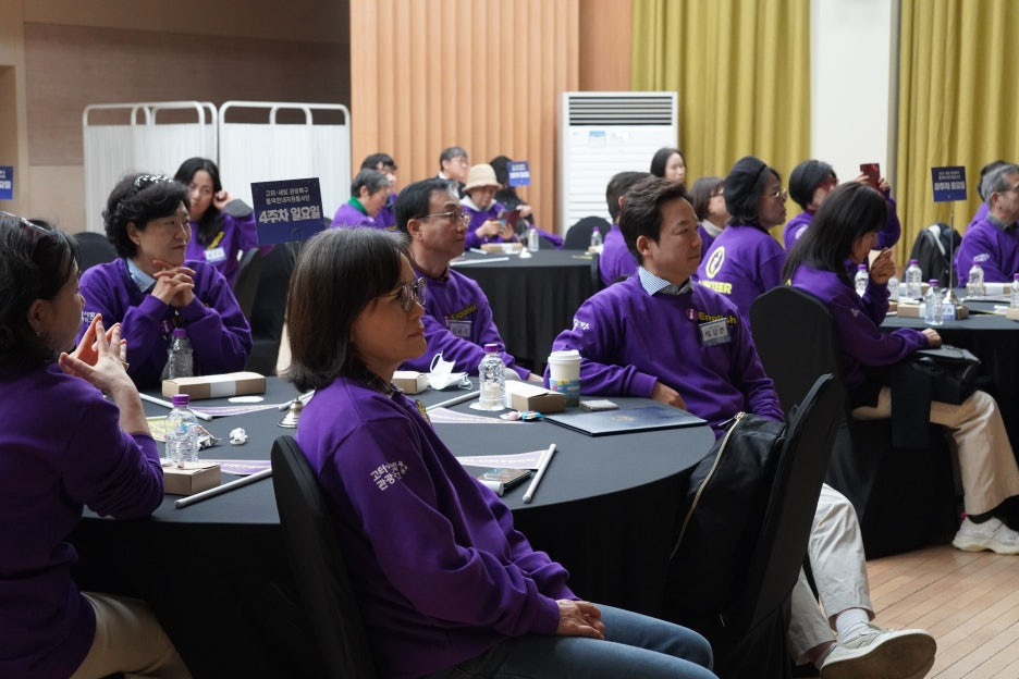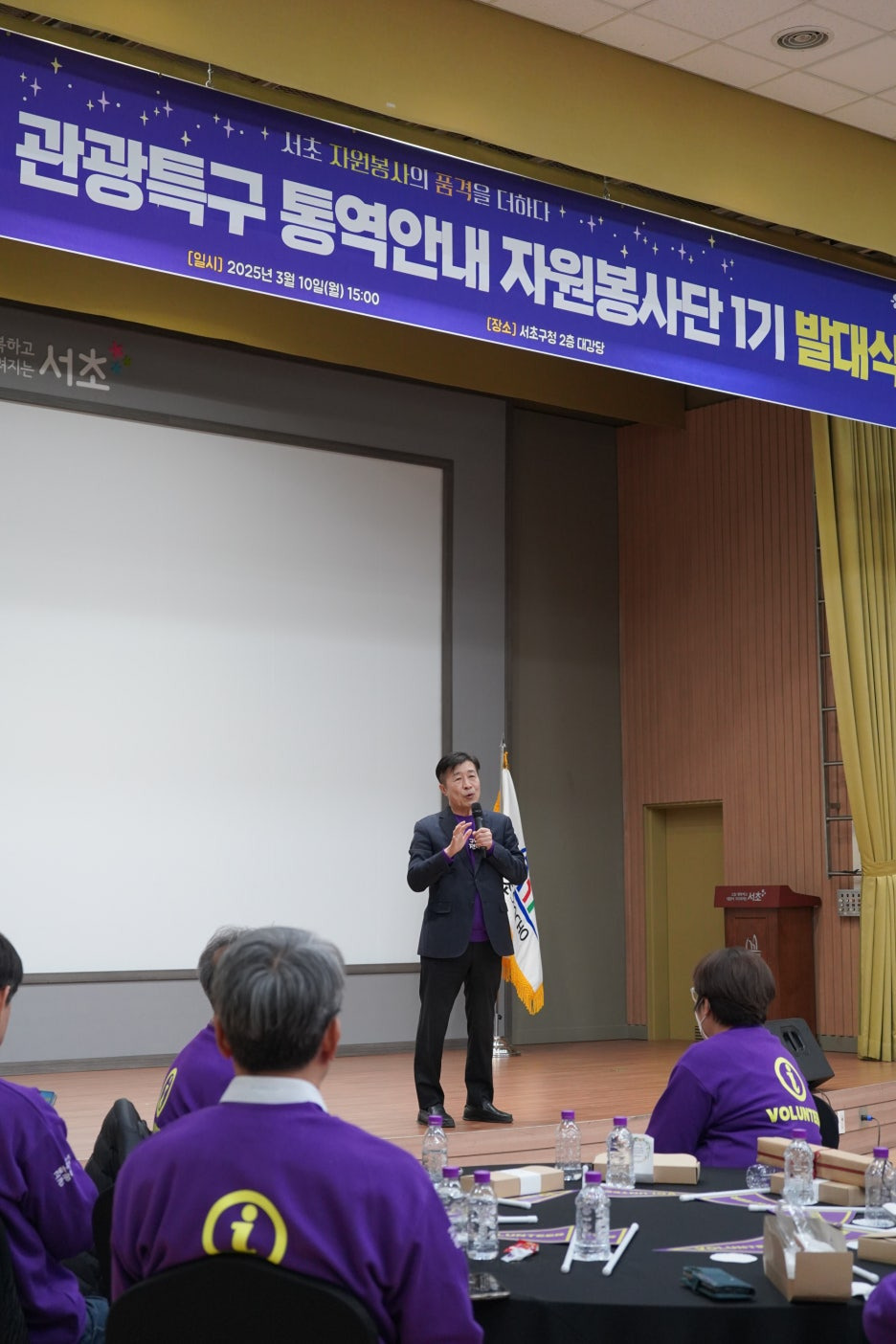 보라색으로 꽉 채워진 강당의 모습을 보니 화사한 꽃밭에 온 것 같더라고요.