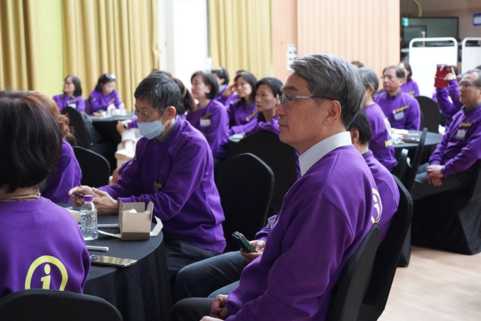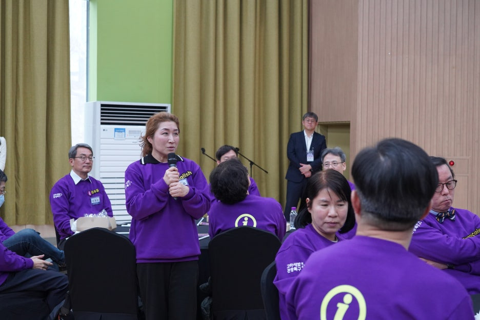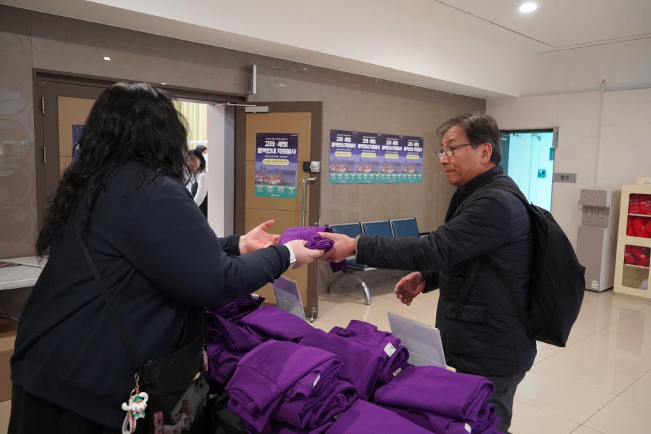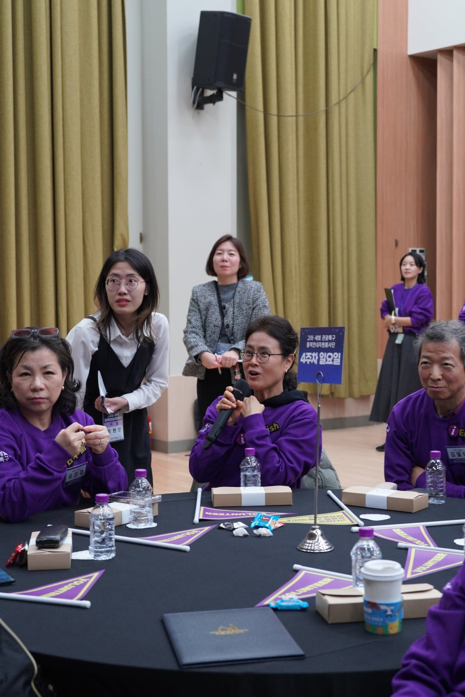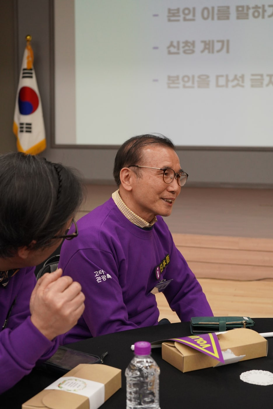 보라색으로 꽉 채워진 강당의 모습을 보니 화사한 꽃밭에 온 것 같더라고요.