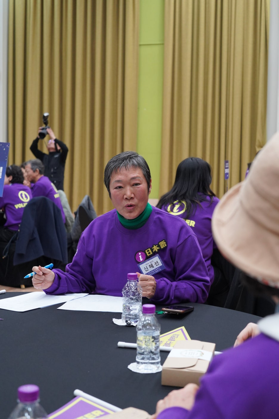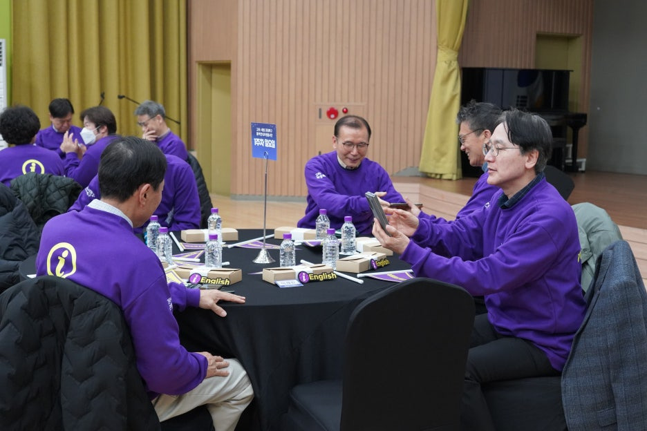 맨투맨을 입고 자리에 앉으신 뒤, 각 조의 분들과 사진도 찍고 화기애애한 첫 만남의 시간을 가지셨습니다!