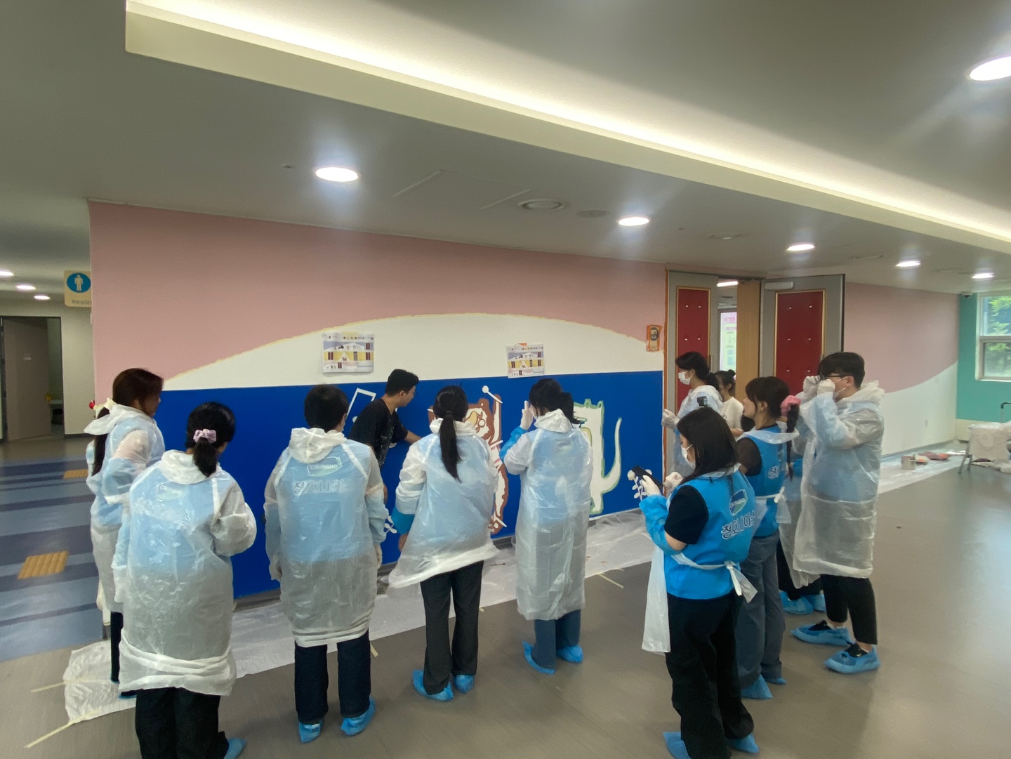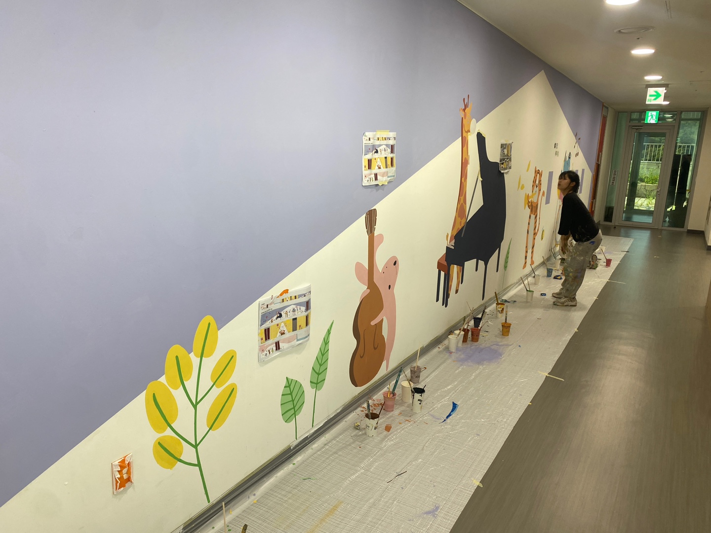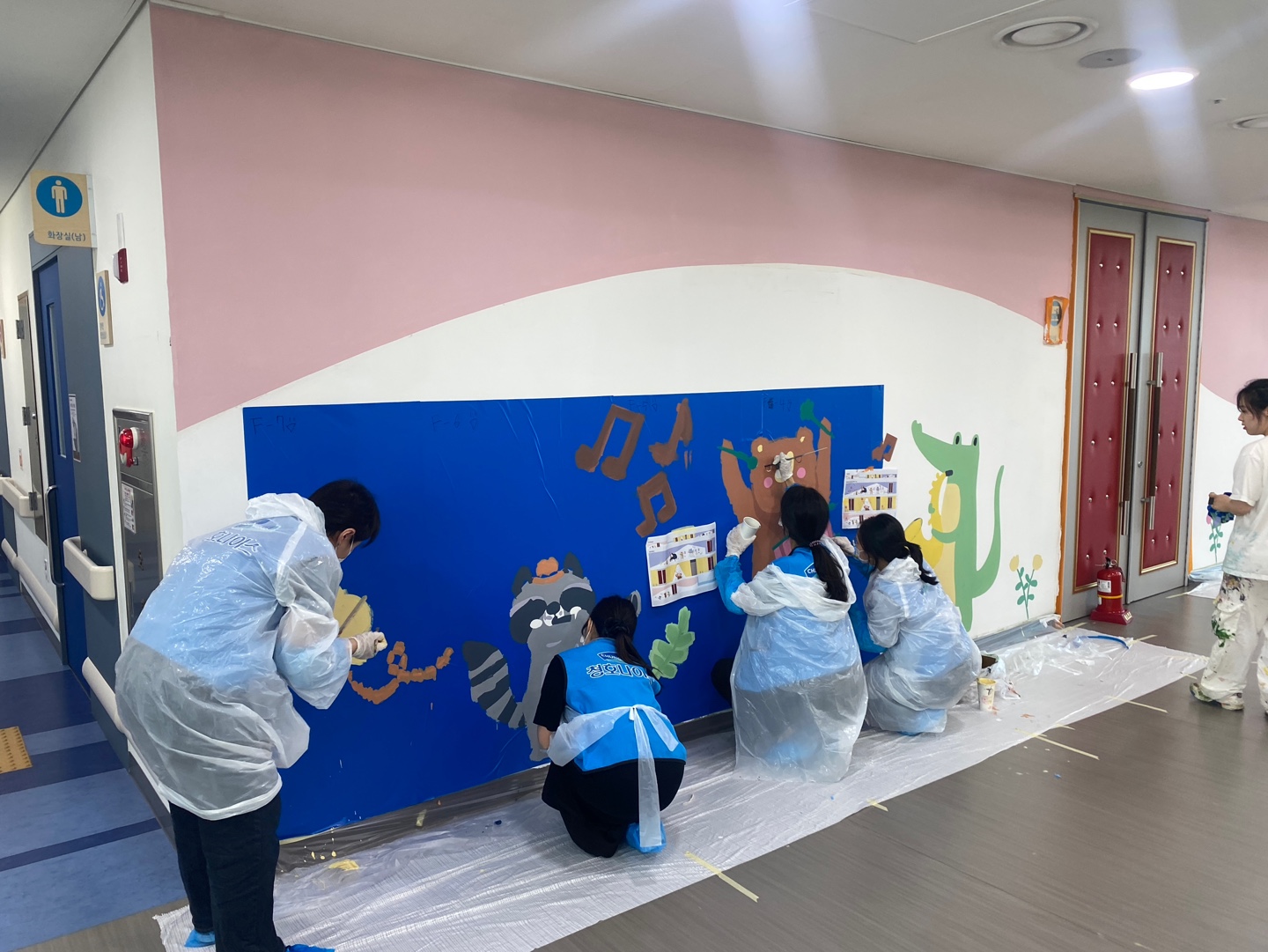 그렇게 2시간 30분이 지나서 활동은 종료 되었고, 캐릭터 동물들, 꽃과 나비, 알록달독한 색상이 벽면에 하나둘 채워졌습니다.