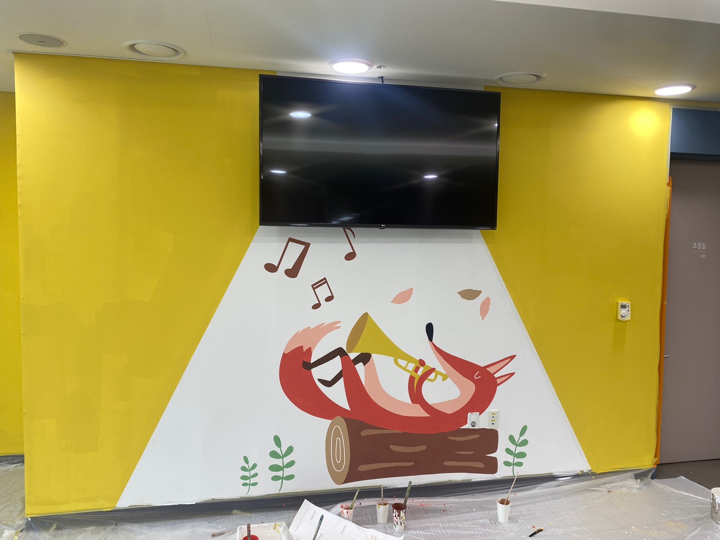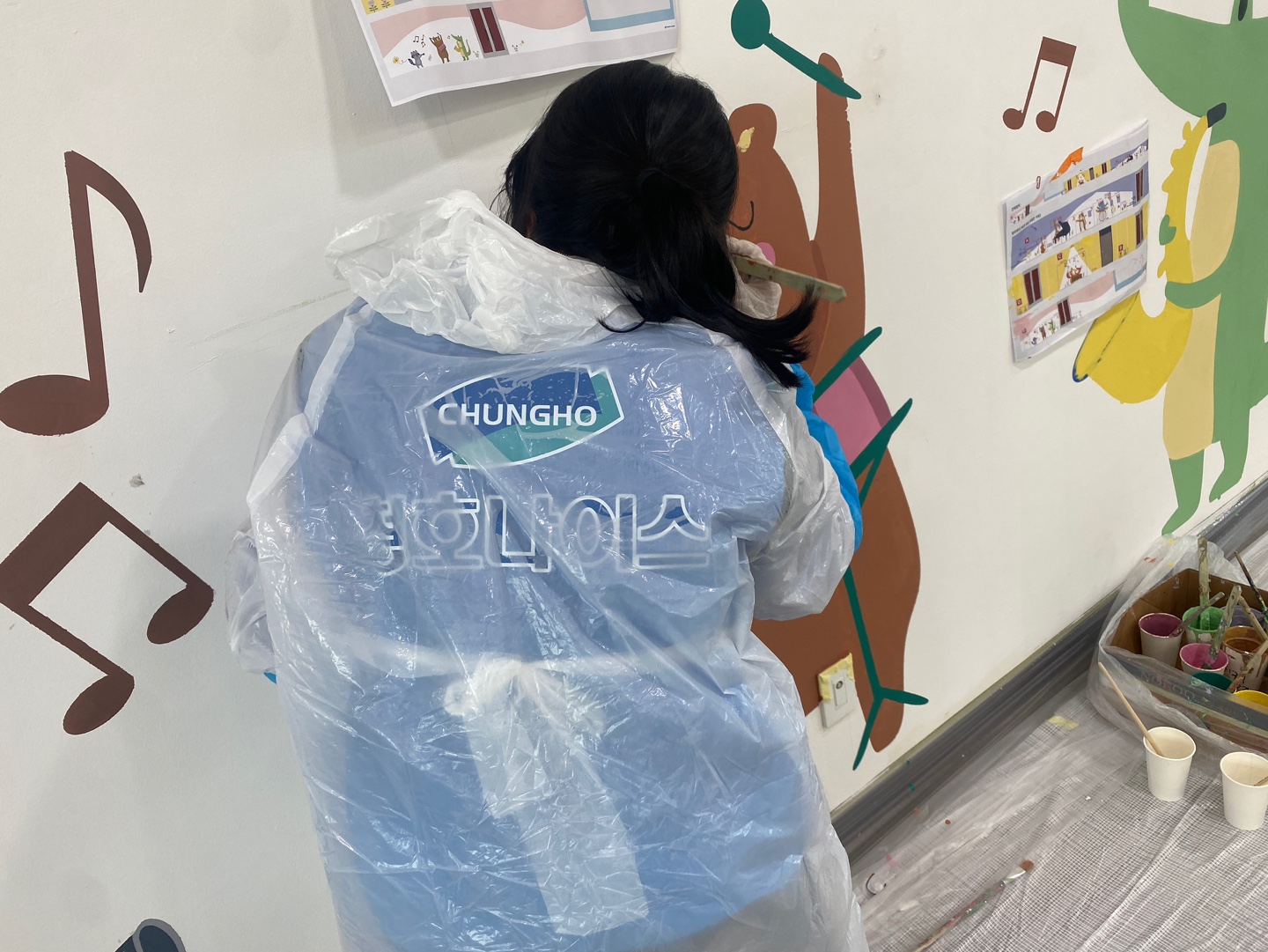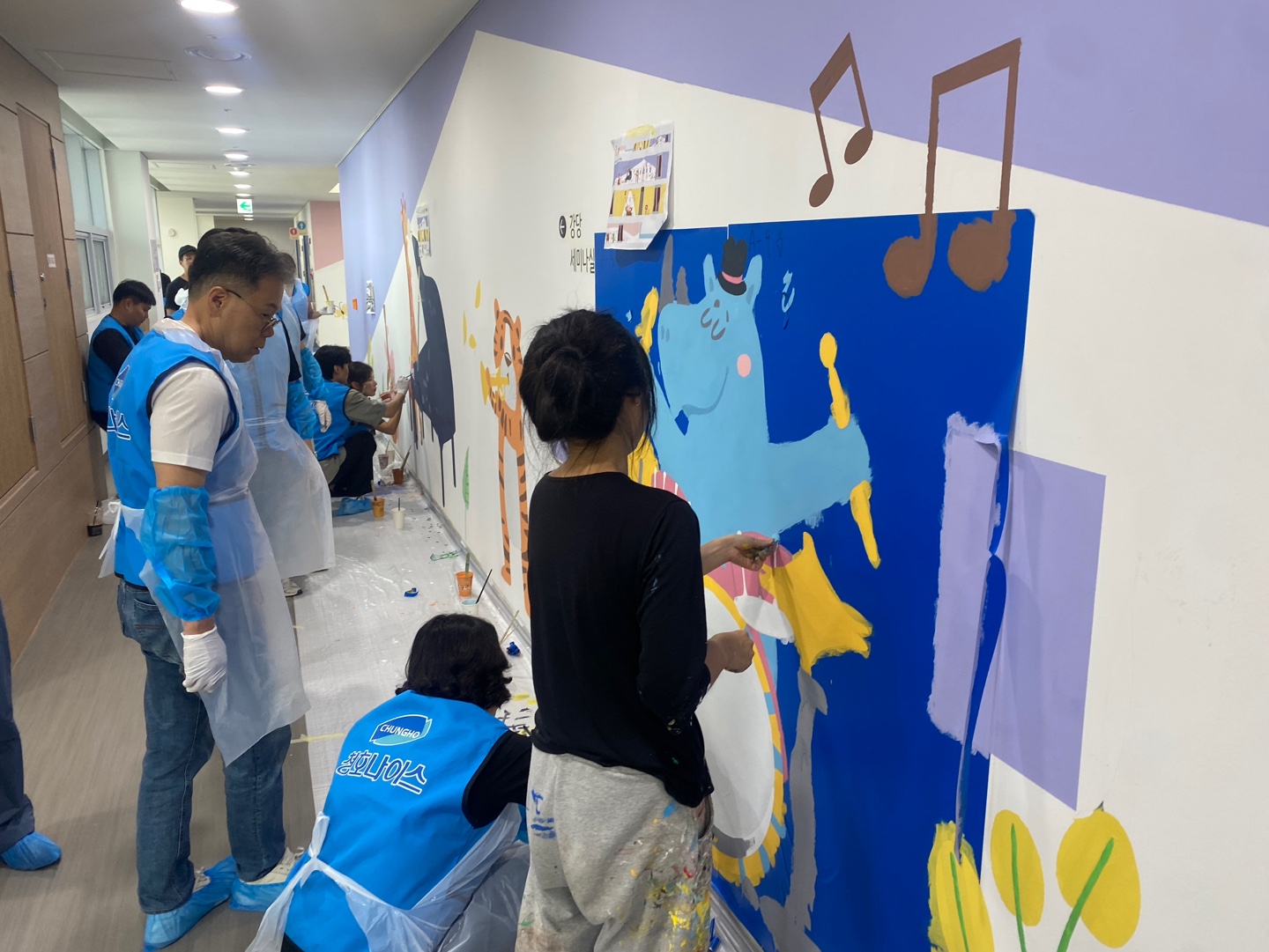그렇게 2시간 30분이 지나서 활동은 종료 되었고, 캐릭터 동물들, 꽃과 나비, 알록달독한 색상이 벽면에 하나둘 채워졌습니다.